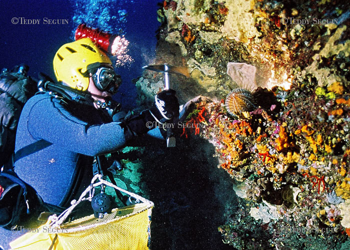 8 heures du matin, le blue marlin quitte la baie de Calvi. Destination, l’un des nombreux points marqués sur la carte du GPS et repérés auparavant par le ROV, petit robot submersible permettant de prospecter les fonds sous-marins. Coco, fidèle équipière du blue marlin et compagne de Jean-Pierre prépare le matériel, le vérifie, tout doit être opérationnel, la plongée d’aujourd’hui s’effectuera à 95 mètres. À cette profondeur, rien ne doit donc être laissé au hasard. De son côté, Jean-Pierre commence à s’équiper. Pour ce type de plongée, il utilise des bouteilles de deux fois 18 litres lui laissant une autonomie d’une vingtaine de minutes. Casque, gants, profondimètre, montre, couteau, piolet, lampe, parachute, panier, Jean-Pierre est prêt. Coco l’aide à capeler ses bouteilles. Mise à l’eau, la concentration est totale, le profil de la plongée en tête, la descente dans le grand bleu commence. le rocher repéré à 95 m semble prometteur, les gestes automatiques, mille fois répétés sont précis et méticuleux. Les branches de corail sont fragiles, avec délicatesse, le mineur des abysses détache une à une les plus grandes d’entre elles. Les corailleurs savent qu’ils doivent préserver les petites branches du gisement pour les années à venir. L’esprit concentré sur le petit piolet ne doit pas perde de vue le temps qui coure. 20 min précisément, même si il reste un peu de corail, il faut remonter lentement vers la surface en respectant bien les paliers de décompressions. À la surface, Coco suit du regard les bulles qui remontent, témoin de la situation du plongeur. Elle attend le signal de la remontée et les premières communications grâce à une planchette sur laquelle ils peuvent s’écrire. Il faut alors préparer le caisson de décompression qui se trouve à bord du bateau. À la sortie de l’eau, le plongeur dispose de trois minutes pour se déséquiper et s’engouffrer dans le caisson où il finira sa plongée. À de telles profondeurs, le moindre pépin peut virer au drame, le caisson est une sécurité indispensable et permet de réduire le temps d’immersion. Une fois à la surface, Jean-Pierre vérifie la qualité de son corail, il y a quelques belles branches qu’il gardera pour lui afin de les sculpter mais la plupart de ces prises seront vendus en Italie pour être transformé en collier ou en bague. L’or rouge de Méditerranée attise les convoitises des braconniers. De fait il devient de plus en plus difficile d’en trouver à des profondeurs raisonnables. Compte tenu de la lenteur de croissance du corail (à peine quelques mm par an), c’est une catastrophe écologique pour la richesse de la Méditerranée. Mais la magie est trop forte et les corailleurs repoussent sans cesse leurs limites physiologiques pour ce trésor. Beaucoup y ont laissé leur santé voir leur vie. Plongeur, artiste et amoureux de la vie, Jean-Pierre ne rêve que d’une chose, être assez riche un jour pour ne plus avoir à se séparer de ce corail qu’il aime tant.