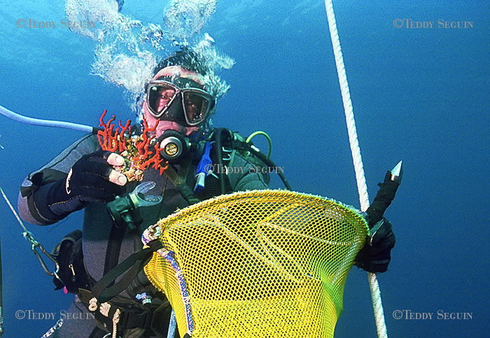 68 m de profondeur, il est très rare maintenant que Jean-Pierre plonge aussi peu profond car on ne trouve plus beaucoup de corail rouge au dessus de 80 mètres. Le corail qu'on pourrai tropuver sur des fonds de 50 à 60 m est bien souvent braconé avant même d'avoir attend sa maturité.