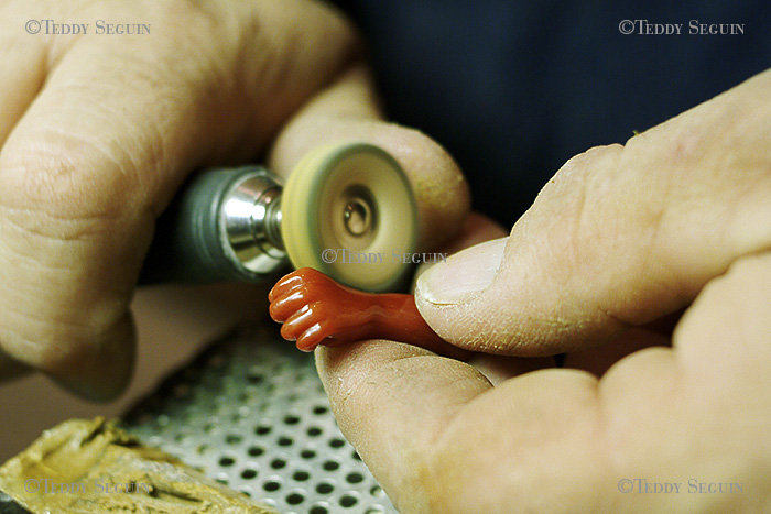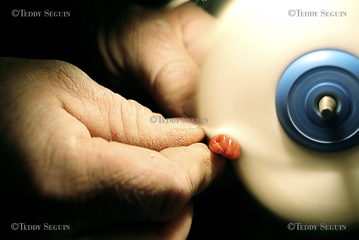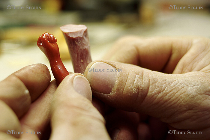 Depuis l’Antiquité, le corail rouge de Méditerranée fait l’objet de tous les fantasmes. D’après une légende grecque, il serait né du sang qui jaillit de la tête de Méduse lorsque Persée lui trancha. Aujourd’hui encore c’est un porte-bonheur. Il symbolise à la fois l’énergie et la prospérité. En Corse, la tradition veut que l’on offre aux nouveau-nés un pendentif en corail rouge. Les corailleurs qu’ils le pêchent doivent maintenant descendre à plus de 100 mètre de profondeur pour en trouver. Jean Pierre Carducci fait partie des 10 scaphandriers professionnels en Corse à posséder une licence officielle pour pêcher cet animal envoûtant. Amoureux de la vie, un peu bourru (il se nomme lui-même « le vieil ours et la mer »), loin des cartes postales et des bibelots destinés aux touristes, Jean-Pierre travaille le corail qu’il pêche et le vend parfois aux badauds qui ont la chance de trouver son échoppe derrière le port, ouverte.